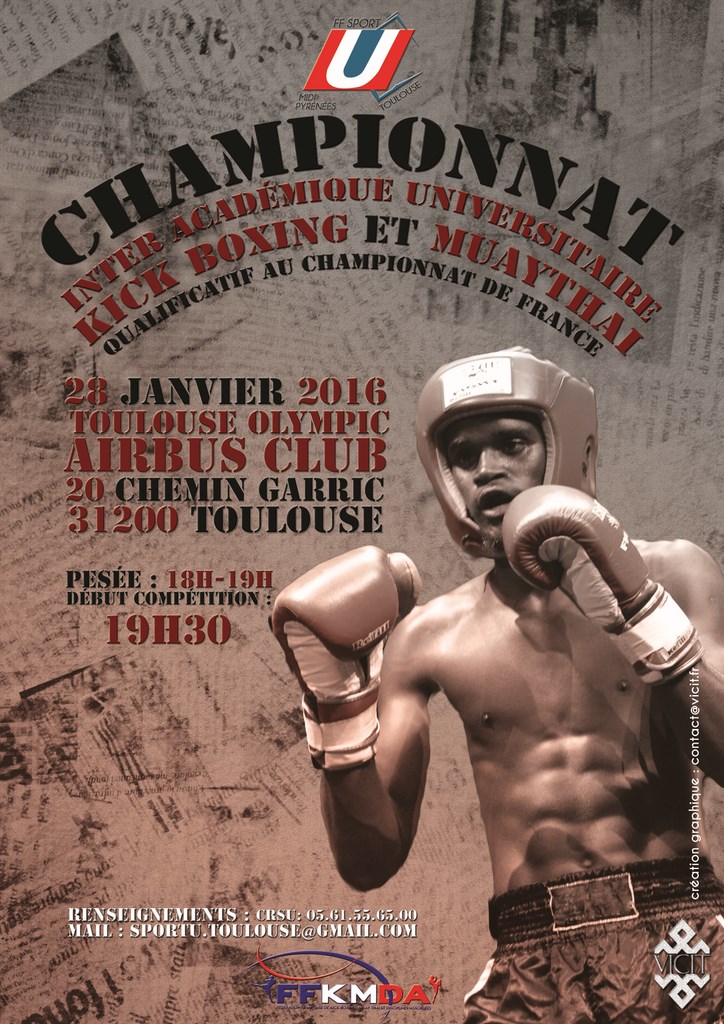 Le championnat inter académique universitaire de Kick Boxing et Muay Thai passera par Toulouse le jeudi 28 janvier 2016.